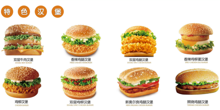 招牌汉堡系列/新品上市系列/美味小吃系列/披萨系列/中餐系列/健康饮品系列