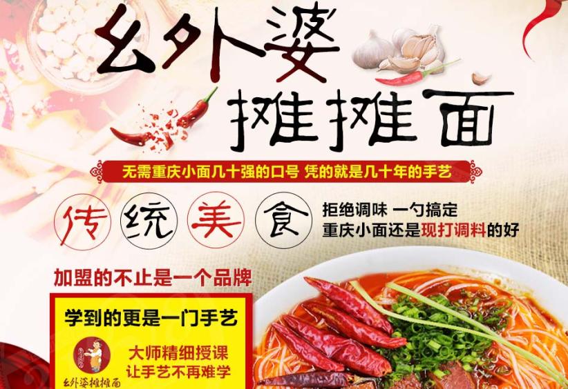 成功加盟幺外婆摊摊面,无需单打独斗,精英团队保驾护航,总部会提供多方面的支持,包括店铺筹建、技术培训、产品更新、推广宣传、营销策划、全面物配、运营管理等等,无需大厨,经营灵活,店面可大可小,一日三餐都,智慧之选不多,收银可观,总部负责到底,让加盟商的事业一举获得成功。